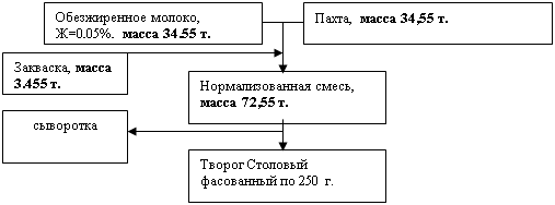 Технологическая схема производства творога “Столового” жирностью 2 %.