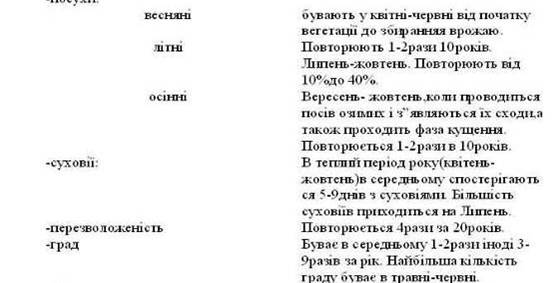 Як ми бачимо з таблиці у сорта Миронівська 61 бажано було б покращити такі показники: зимостійкість та посухостійкість, стійкість проти борошнистої роси та кореневої гнилі, борошномельні та хлібопекарські якості. Цього можна досягти проведенням селекційної роботи в даних напрямках. Рівень ГПС у всіх сортах низький і потребує значного підвищення. Розділ 3. Характеристика зовнішніх умов вирощування культури3.1 Агрокліматичні умовиХарактеристика умов природної зони надається в таблиці 3. Таблиця 3 Характеристика агрокліматичних умов природної зони Лісостепу