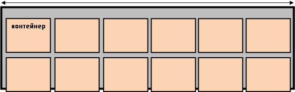 Рис. 4 Хранилище для овощных, примерный план Хранилище для моркови имеет размеры 12 х 12 м. На хранение заложено 672 тонны продукции, что составляет 1290 контейнеров. Размеры контейнеров – 1240х835х920 мм. Расстояние от боковых стен по длине и по ширине около 70 см, между контейнерами – 10 см. Всего по длине встанет 8 контейнеров, по ширине 12. В один ряд будет поставлено 96 контейнеров, в высоту будет 2 яруса (1,84 м в итоге в высоту). В хранилище итого – 192 контейнера. Следовательно, для закладки всей продукции необходимо 7 хранилищ.