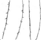 Рис 1.- Бесшиповая форма акации белой (справа) В. С. Мошков [1950, 1951] обнаружил, что при выращивании акации на коротком дне у нее исчезают колючки. Это дало основание В. Керестеши [1932] считать, что «методом фотопериодической индукции можно будет освобождаться от колючек белой акации». Несколько ранее М. А. Квятковская [1931] сделала вывод, что« с увеличением влажности, а значит и при несколько пониженном освещении» - растения акации белой дают неколючие формы. Попытки выведения бесшиповой акации изменением условий произрастания (в том числе действием фотопериода) вряд ли являются перспективными. Известно, что крупные шипы характерны для самых сильных периодов роста акации белой. Это хорошо прослеживается на ее однолетних побегах. Изменение размеров шипов наблюдается и в течение жизни дерева. С замедлением роста уменьшаются и размеры шипов. Сеянцы акации с длинного (18—19 часового) дня были вооружены большими шипами, тогда как у растений с 10-часового дня шипы отсутствовали [Мошков, 1900]. Но средний годичный прирост сеянцев акации на 18—19-часовом дне был равен 50 см, а на 10-часовом дне — всего лишь 2 см. При таком приросте шипы просто не могли появиться, но это не значит, что их не будет, если обеспечить акации нормальные условия роста. С другой стороны превращение колючей акации в бесшиповую за счет десятикратных снижений приростов (в приводимом примере — в 25 раз!) не может быть оправдано с хозяйственной точки зрения. Необходимо в первую очередь вести селекцию бесшиповой формы, добиваясь, чтобы наряду с отсутствием шипов, деревья акации отличались хорошим ростом, качеством стволов, устойчивостью к неблагоприятным факторам среды, энтомо- и фитовредителям [Богданов,1900]. Пирамидальная форма акации белой (v. pyramidalis Pepin) представляет интерес не только в озеленении, но и в защитном лесоразведении. Деревья этой формы имеют хорошо выраженный ствол и компактную узкопирамидальную или колоновидную крону. Побеги не имеют шипов и прикрепляются к стволу под углом 30—45°[Богданов,1900]. Пирамидальная форма встречается в Ботаническом саду г. Ростова-на-Дону, в озеленительных посадках Новочеркасска, Ростова и других городов. По нашим наблюдениям пирамидальная форма несколько уступает в морозостойкости обыкновенной акации. В очень суровые зимы в условиях Ростовской области деревья пирамидальной формы сильнее повреждались морозом[Богданов,1900]. Однолистная форма акации белой (v. monophylla kirchn) характеризуется простыми листьями и листьями с 2—3 листочками. Первые листья, образующиеся у акации белой после прорастания семян - простые и только позднее появляются сложные непарно-перистые листья. Основываясь на замечании Ч. Дарвина: «...зародыш представляет собой как бы сохраняемый природой портрет прежнего и менее измененного состояния вида» и биогенетическом законе Э. Геккеля (онтогенез повторяет филогенез), можно предполагать, что однолистная форма является более древней, а формы со сложными листьями появились позднее [Богданов,1900]. Байснер рассматривал однолистную акацию как закрепленную юношескую форму [1946]. П. Л. Богданов [1999] относит ее к аберрациям, возникающим в результате мутаций. По X. Лиру [1646] — это мутация, закрепленная наследственно. Изучая однолистную форму в Велико-Анадольском лесничестве, Н. П. Кобранов [1933] установил, что при осеннем цветении однолистн