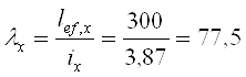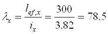 За сортаментом приймаємо 2L125×12, для яких: A=2·28,9=57,8см2≈ Aпотр =54см2 іx=3,82см>іx,min=2,5см при δ=12мм - іу=5,62см>іу,min=5см. Для перевірки стійкості знаходимо: