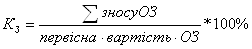 де Кз - коефіцієнт зносу основних фондів; Зо - сума зносу основних фондів; Фк - балансова вартість основних фондів. Показник зносу основних фондів може визначатись також у відсотках на початок і на кінець звітного періоду і дає змогу оцінити стан основних фондів. Коефіцієнт придатності основних фондів розраховується за формулами: Кn=1-Кз, або Кn=100%-Кз, де Кn - коефіцієнт придатності основних фондів; Кз - коефіцієнт зносу основних фондів. Коефіцієнт придатності показує, яка частина основних фондів придатна для експлуатації в процесі господарської діяльності.