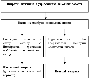 Балансова вартість основних засобів, що стосується бухгалтерського обліку, є сума за якою основні засоби наведені в балансі після вирахування суми накопиченої амортизації (накопиченого зносу). Балансова вартість основних засобів може змінюватись не лише в наслідок амортизації та переоцінки, а й в результаті додаткових витрат, понесених підприємством після надходження об’єкта. Після надходження основних засобів підприємство може мати витрати, пов’язані з їхньою експлуатацією або поліпшенням їх стану. Підхід до відображення таких витрат в бухгалтерському обліку залежить від їхнього впливу на майбутні економічні вигоди, що очікуються від використання об’єкта (рис. 2.).