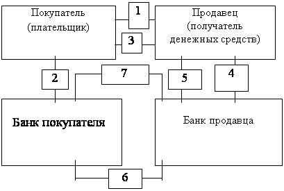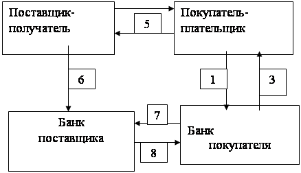 Схема документооборота при расчетах платёжными поручениями. 1. Отгрузка продукции, оказание услуг, выполнение работ. 2. Предъявление в банк платежного поручения на перечисление суммы со счета плательщика. 3. Выписка из расчетного счета о списании суммы со счета плательщика. 4. Направление платежного поручения из банка плательщика в учреждение банка, обслуживающее получателя. 5. Выписка из расчетного счета поставщика о зачислении суммы. Платежное поручение представляет собой поручение отправителя денег обслуживающему банку-получателю о переводе его денег в пользу бенефициара в сумме, указанной в поручении. Отправитель денег предъявляет в обслуживающий банк-получатель платежное поручение на бланках установленной формы (приложение). В графе "назначение платежа" отправитель денег обязан указать наименование, номер и дату документа (документов), на основании которого осуществляется перевод денег, а также в графе "код назначения платежа" кодовое обозначение платежа. При осуществлении перевода денег в пользу бенефициара-нерезидента отправитель денег, за исключением случаев, когда отправителем денег является банк, предъявляет в обслуживающий банк-получатель заявление на перевод денег на бланках установленной формы (приложение). Такое заявление является платежным поручением отправителя денег обслуживающему банку-получателю о переводе денег. В заявлении на перевод денег помимо реквизитов, указанных в форме приложения Правил, банк вправе включить дополнительные сведения об отправителе денег, а также сведения необходимые банку для обработки данного заявления. Платежное поручение/заявление на перевод денег принимается банком-получателем в течение десяти календарных дней с указанной в нем даты выписки. Кроме платежного поручения или заявления на перевод денег отправитель денег обязан по требованию банка-получателя в соответствии с законодательством Республики Казахстан предъявить документы, подтверждающие обоснованность платежа. По согласованию с обслуживающим банком-получателем отправитель денег может указывать в платежном поручении/заявлении на перевод денег дату валютирования. Платежное требование-поручение представляет собой требование бенефициара к отправителю денег об оплате за поставленные товары, выполненные работы, оказанные услуги, предъявляемое на основании документов, подтверждающих указанное требование. Бенефициар предъявляет в банк бенефициара платежные требования-поручения и реестр платежных требований-поручений на бланках установленной формы (приложения). В графе "назначение платежа" платежного требования-поручения бенефициар обязан указать реквизиты документов, на основании которых предъявляется платежное требование-поручение. Платежное требование-поручение вместе с реестром представляется в банк бенефициара, который, проверив полноту заполнения всех реквизитов бенефициара, направляет платежное требование-поручение в банк отправителя денег в порядке, установленном настоящими Правилами. В случае обслуживания бенефициара и отправителя денег в одном банке-получателе, а также предъявления платежного требования-поручения в банк отправителя денег, минуя банк бенефициара, приложение реестра не требуется. Платежное требование-поручение и приложенный реестр могут быть предъявле
