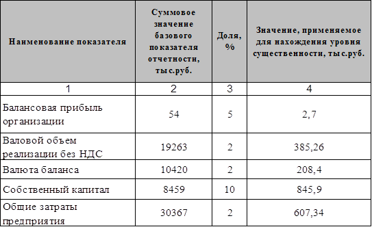 Алгоритм расчета: Столбец четыре получаем умножением данных из столбца два на показатель из столбца три, деля его на 100%: Среднее арифметическое показателей в столбце 4 составляет: 410 тыс. руб. (2,7+385,26+208,4+845,9+607,34)/5=410 тыс. руб. Наименьшее значение отличается от среднего на: (410–2,7)/410*100%=99,34%, Наибольшее значение отличается от среднего на: (845,9–410)/4105*100%=106,32%. Поскольку значение 2,7 тыс. руб. отличается от среднего значительно, а значение 845,9 тыс. руб. – не так сильно (к тому же второе по величине значение 607,34 тыс. руб. очень близко к 845,9 тыс. руб.), принимаем решение отбросить при дальнейших расчетах наименьше значении, а наибольшее – оставить. Новое среднее арифметическое составит: (845,9+607,34+208,4+385,26)/4=511,72 тыс. руб. Полученную величину допустимо округлить до 512 тыс. руб. и использовать этот количественный показатель в качестве значения существенности. Различия между значениями уровня существенности до и после округления составляют: (512–4103)/410*100%=27,8%, что находится в пределах нормы допущения 30%. В процессе аудита могут возникнуть обстоятельства, влияющие на изменение аудиторского риска и уровня существенности, установленные при планировании. Для оценки системы внутреннего контроля были использованы вопросники (анкеты), отраженные в таблице 1 (Приложение 2). Для этого были опрошены, в первую очередь лица, ответственные за организацию учёта материалов (эти ответы также можно получить, проведя наблюдение за работой бухгалтерии). Данные вопросы, а также анализ организационной структуры, схемы и графика документооборота, учёт фактора размера организации позволил сделать первичную оценку системы внутреннего контроля, т.е. оценить её эффективность и надёжность как высокую, среднюю или низкую. В нашем случае на ОАО «КАТОН» РСМУ-10 степень системы внутреннего контроля был оценен как средний. Была проведена оценка контрольного риска. Он обратно пропорционален надёжности системы внутреннего контроля (высокой надежности соответствует низкий риск; средней надежности соответствует средний риск; низкой надежности соответствует высокий риск). Разработка программы аудита и плана, основывалась на предварительных знаниях об экономическом субъекте, а также на результатах проведенных аналитических процедур. Составляя общий план и программу аудита, учитывалась степень автоматизации обработки учетной информации, что позволило точнее определить объем и характер аудиторских процедур. Результаты проводимых процедур при подготовке общего плана и программы были детально задокументированы, так как данные результаты являются основанием для планирования аудита и могут использоваться в течение всего процесса аудита. В общем плане был определен способ проведения аудита на основании результатов предварительного анализа, оценки надежности системы внутреннего контроля, оценки рисков аудита. Таблица 2.4. – Общий план аудиторской проверки учета материально-производственных запасов
