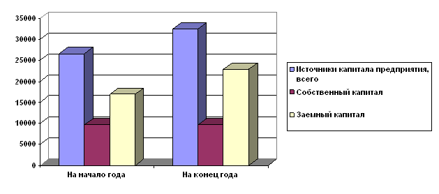 где А – темп прироста реальных активов, %, Ос – основные средства и вложения без учета износа, торговой наценки, нематериальных активов, использованной прибыли, Обс – оборотные средства Имеем: А = ((11998 + 18735) / (8256 + 14154) – 1) × 100% = 37,1% Таким образом, интенсивность прироста реальных активов за год увеличилась на 37,1 %, что свидетельствует об улучшении финансовой устойчивости предприятия. Следующим моментом анализа является изучение динамики и структуры источников финансовых ресурсов. Анализ динамики и структуры источников финансовых ресурсов (данные для анализа - приложение - бух баланс)