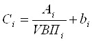 где Сі – себестоимость і-го вида продукции; Ai – постоянные затраты, отнесенные на і-ый вид продукции; bi – переменные затраты на единицу і-го вида продукции; VВПi – объем выпуска і-го вида продукции [21, с. 104]. Зависимость себестоимости единицы продукции от данных факторов показана на рис.3.4.