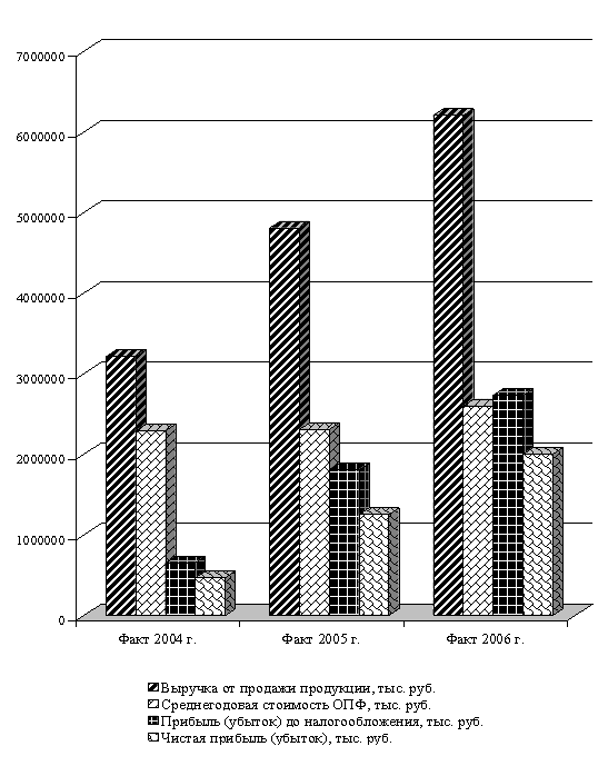 Рисунок 3. Основные технико-экономические показатели предприятия ОАО «АвтоВАЗагрегат» за периодс 2004 по 2006 гг. |