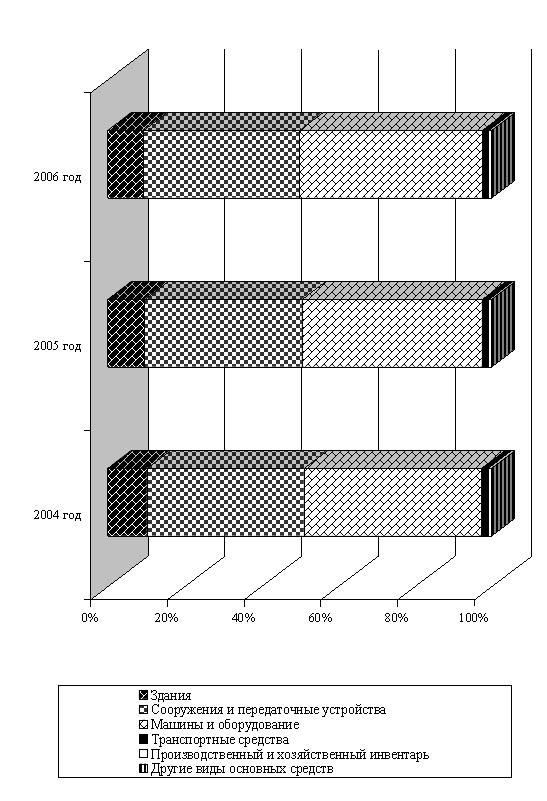 Рисунок 6. Структура основных средств предприятия за период с 2004 по 2006 гг.