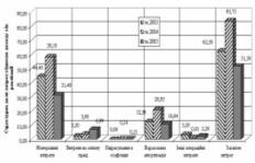 Рис.2.9. Динаміка та структура витрат (долі в формуванні собівартості) в ТОВ “УНІРЕМАГРО” за 2003 –2005 роки