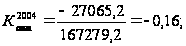 Аналіз показує, що коефіцієнт маневреності власного капіталу КП “Втп “ВОДА” на кінець 2004 року є просто катастрофічним, це спричинено значним зменшенням статутного капіталу підприємства в наслідок зміни власника та переєстрації, починаючи з 2005 року він знаходиться в межах норми і має тенденцію до зменшення. На кінець 2006 року близько 7% власного капіталу підприємства використовувалося для фінансування поточної діяльності. 3) Коефіцієнт фінансування – характеризує залежність підприємства від запозичених коштів, розраховується за формулою [54]: