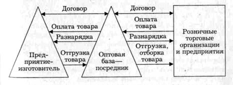 Рис. 4. Схема организации документооборота при оптовой торговле с участием оптового предприятия в расчетах