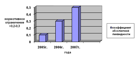 Рисунок 8. Динамика изменения коэффициента абсолютной ликвидности по годам.