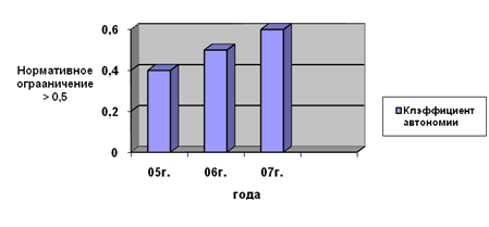 Рисунок 5. Динамика изменения коэффициента автономии по годам.