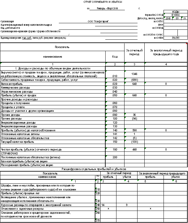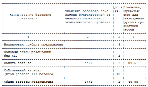 За основу мы возьмем данные организации ООО «Конфетпром», так же форму 1 «Бухгалтерский баланс» (Приложение №1) и форму 2 «Отчет о прибылях и убытках» (Приложение №2). Организация: Общество с ограниченной ответственность «Конфетпром» ИНН/КПП: 7721049904/772101001 Зарегистрирован в: ИФНС №21 по г. Москве Р/сч. 40710823230050064512 в АКБ «АВТ- банк» Юридический адрес: 113205, Москва г, Вавилова, дом № 65 Фактический адрес: 113205, Москва г, Вавилова, дом № 65 Среднее арифметическое значение составит: (89,6+68,98)/2=79,29 где среднее арифметическое округлим до 80000 тыс.руб. Различие между значением уровня существенности до и после округления составляет: (80000-79290)/79290х100%=0,9%, что находится в пределах 20 % Таким образом, уровень существенности составил 80000 тыс. руб. Список используемой литературы 1. Федеральный закон от 30 декабря 2008 года № 307-ФЗ (в ред. от 16.01.2009) "Об аудиторской деятельности" 2. Федеральный закон от 21.11.96 № 129-ФЗ (ред. от 23.11.2009) "О бухгалтерском учете" 3. Приказ МФ РФ от 29.07.98 № 34н ( в ред. от 26.03.2007) "Об утверждении Положения по ведению бухгалтерского учета и бухгалтерской отчетности в Российской Федерации" 4. Правило (стандарт) № 1 "Цель основные принципы аудита финансовой (бухгалтерской) отчетности" 5. Правило (стандарт) № 2 "Документирование аудита" 6. Правило (стандарт) № 3 "Планирование аудита" 7. Правило (стандарт) № 4 "Существенность в аудите" 8. Ковалева О.В. Бухгалтерский учет и аудит бухгалтерской отчетности". Ростов н/Д: "Феникс", 2007 9. Сайт http://ru.wikipedia.org 10. Программа 1С «Бухгалтерия 8.1». БУХГАЛТЕРСКИЙ БАЛАНС
