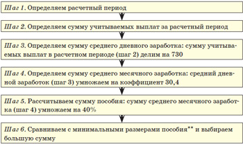 *За неполный календарный месяц пособие выплачивается пропорционально количеству календарных дней (включая нерабочие праздничные дни) в месяце, приходящихся на период ухода за ребенком. **Минимальные размеры пособия корректируются на районный коэффициент. ПримерН.Г. Шишкина работает в ООО «Сосновый бор» с 2007 года. Она была нетрудоспособна с 17 по 21 января 2011 года (5 календарных дней). Расчетный период — с 1 января 2009 года по 31 декабря 2010 года. Сумма выплат в 2010 году, на которые были начислены страховые взносы, — 415 000 руб., в 2009 году — 150 000 руб. Страховой стаж работницы — 7 лет. Какую сумму пособия по временной нетрудоспособности ей необходимо начислить? РешениеНачнем расчет с шага 2 (схема 1). Определяем сумму учитываемых выплат. За 2010 год учитываем 415 000 руб. Сумму выплат за 2009 год учитываем полностью. Общая сумма учитываемых выплат составит 565 000 руб. (415 000 руб. + 150 000 руб.). Шаг 3. Определяем сумму среднего дневного заработка. Средний дневной заработок равен 773,97 руб. (565 000 руб. ÷ 730 дн.). Шаг 4. Определяем сумму дневного пособия. Дневное пособие равно 619,18 руб. (773,97 руб. × 80%). Шаг 5. Рассчитываем сумму пособия. Сумма пособия за 5 календарных дней нетрудоспособности равна 3095,9 руб. (619,18 руб. × 5 календ. дн.). Величина пособия, выплачиваемого за счет средств работодателя за первые 3 календарных дня нетрудоспособности, составит 1857,54 руб. (619,18 руб. × 3 календ. дн.). Величина пособия, выплачиваемого за счет средств ФСС России, — 1238,36 руб. (3095,9 руб. — 1857,54 руб.). Переходные положенияСтраховой случай начался и закончился в 2010 году. Пособия исчисляются по правилам 2010 года, даже если работник предъявит листок нетрудоспособности в 2011 году. Страховой случай начался в 2011 году. Пособия нужно определять по новым правилам, установленным с 2011 года. Страховой случай начался в 2010−м, а закончился в 2011 году. За дни 2010 года пособия исчисляются по правилам 2010 года. За период с 1 января 2011 года по день окончания страхового случая сумму пособия следует рассчитать по старым и новым правилам, полученные суммы сравнить и выбрать большую из них. 1.3 Налоговый учет расходов на оплату труда и страховых взносов Расходы, связанные с поощрительными, стимулирующими и компенсационными выплатами, осуществляемые на основании трудового договора, локального нормативного акта, могут быть признаны в налоговом учете при условии, что они соответствуют требованиям статьи 252 НК РФ. На это указали специалисты Минфина России в письме от 03.12.2010 № 03−03−06/2/205. Если данные виды расходов не связаны с производственными результатами и не соответствуют критериям статьи 252 НК РФ, то признать их нельзя. При этом специалисты финансового ведомства отметили, что затраты в виде страховых взносов на обязательное пенсионное, социальное и медицинское страхование учитываются в составе прочих расходов, даже если затраты на указанные выше выплаты не уменьшают облагаемую базу при исчислении налога на прибыль (подп. 1 п. 1 ст. 264 НК РФ). 2. Бухгалтерский учет труда и его оплаты 2.1 Порядок оформления расчетов с персоналом по заработной плате Заработная плата работникам организаций в соответствии с законодательством о труде выплачивается не реже чем каждые полмесяца в сроки, установленные коллективным договором. Применяется авансовый и безавансовый порядок расчетов по заработной плате за первую половину месяца. В первом случае р
