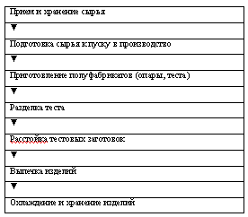 Ошпарка тестовых заготовок паром Выпечка в люлечно-подиковой печи А2ШПГ. Охлаждение, хранение изделий: -охлаждение изделий на транспортере -упаковывание -хранение -транспортирование Гарантийный срок хранения и срок годности. Гарантийный срок хранения и срок годности при температуре не выше 250С и относительной влажности воздуха 65-75% неупакованных сушек василеостровских - 45 суток, упакованных в полимерные материалы отечественные по действующей нормативной или технической документации или импортные по сертификату фирм-производителей, разрешенные органами Госсанэпиднадзора для упаковывания пищевых продуктов-90 суток. 6. Производственная технологическая лаборатория Производственная технологическая лаборатория (ПТИЛ) ОАО «Хлебозавод Василеостровского района» выполняет ряд важнейших функций, контроль качества основного и вспомогательного сырья, технологические расчеты, контроль технологического процесса, разработка новых рецептур Лаборатория устанавливает режим технологического процесса для каждого сорта изделий, который утверждается главным инженером. Изучает причины отдельных недостатков качества изделий. Большое внимание на хлебозаводе уделяется качеству готовой продукции. Контроль качества осуществляется Отделом технического контроля (ОТК) и ПТИЛ. Благодаря жесткой системе контроля качества продукция завода пользуется заслуженной популярностью у жителей Петербурга и области. 6.1 Работа сменного технолога График работы сменного технолога два дня в день, выходной, две ночи, три выходных. Инженер-технолог подчиняется и работает под руководством начальника производственно-технологической лаборатории. Цель должности: Обеспечивать технологический контроль процесса производства на всех стадиях в соответствии с установленными технологическими схемами, предупреждать выпуск продукции, не соответствующейтребованиям стандартов. Правильность определения технологических затрат и механических потерь. Соблюдение правил внутреннего трудового распорядка, санитарных правил, требований техники безопасности, мер противопожарной безопасности, и инструкций по предотвращению попаданий посторонних предметов в продукцию. Документация, заполняемая сменным технологом: 1.журнал учета металломагнитной примеси в сырье. 2.журнал стекляююй посуды и приборов. 3.журнал регистрации усушки. 4.журнал определения упеков. 5.журнал технологических указаний и рекомендаций. 6.журнал контроля производства. 6.2 Схема внедрения в производство нового вида продукции 1.Создание рецептуры 2.Расчет массовой доли сахара и жира в изделии 3.Расчет энергетической ценности изделия 4.Разработка технических условий 5.Получение гигиенического заключения 6.Получение сертификата соответствия и лицензии 7.Расчет рабочей рецептуры (В том числе расчет таблиц количества воды и растворов соли и сахара) 8.Расчет выхода по пробным выпечкам 9.Внесение изменений в текущие документы ПТИЛ: справочник готовых изделий, - нормативы на квартал -технологические показатели (расчет); - технологический план (расчет); - справочник унифицированных рецептур; - незавершенные производства (расчет); - пересчет выхода на фактическую влажность муки; - физико-химические показатели готовых изделий (расчет) 7. Санитария Производственная санитария. 1.Все помещения хлебопекарных