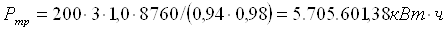 М – мощность воздуходувки ТВ-600-1,1, М = 200 кВт; n – количество работающих воздуходувок, n = 3; Траб – время работы оборудования, час, Траб = 8760 ч; Кс – коэффициент спроса, принимаем Кс = 1,0; ηдв – КПД двигателя, ηдв = 0,94; ηсети – КПД электросети, ηсети = 0,98.