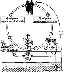 Содержание агроэкологического мониторинга: 1...3 - сточные и грунтовые воды; 4,12 - питьевые воды; 5 - выделения; 6 - токсиканты; 7 - корма; 8... 11 - продукты питания Почвенный экологический мониторинг состоит из трех последовательных взаимосвязанных частей: контроль (наблюдения) за состоянием почв и почвенного покрова и оценка их пространственно-временных изменении; прогноз вероятных изменений состояния почв и почвенного покрова; научно обоснованные рекомендации по направленному регулированию основных средств и режимов в почвах, непосредственно определяющих их плодородие и урожайность сельскохозяйственных культур. Получаемая на базе мониторинга информация об изменении свойств почвы, почвенных режимов и процессов под воздействием естественных факторов почвообразования и антропогенных нагрузок служит основой для моделирования почвенного плодородия. Задача мониторинга состояния почвенного покрова - обеспечение регулярного контроля за использованием земель (соответствие природного потенциала земель их производственному назначению); однородностью почвенного покрова полей (контурность, пятнистость, образование микрорельефа и др.); эрозионными процессами (увеличение числа оврагов, дефляция поверхности, перемещение барханов, дюн и др.); оползневыми и селевыми наносами; подсклоновым заилением, заболачиванием, засолением, опустыниванием и другими негативными процессами. Наблюдения за состоянием почвенного покрова, как правило, осуществляют путем наземного почвенного картирования. Усиление негативных антропогенных воздействий, обусловливающих нарушение почв и снижение их плодородия, требует включения в программы почвенно-экологического мониторинга следующих задач: · определение потерь почвы (в том числе скорости потерь) в связи с развитием водной эрозии и дефляции; · контроль за изменением кислотности и щелочности почв (прежде всего в районах с повышенными дозами внесения минеральных удобрений при осушении и орошении, а также при использовании мелиорантов и промышленных отходов в окрестностях крупных промышленных центров, которые характеризуются высокой кислотностью атмосферных осадков); · контроль за изменением водно-солевого режима и водно-солевых балансов мелиорируемых, удобряемых или каким-либо другим способом изменяемых почв; · выявление регионов с нарушенным балансом основных элементов питания растений; обнаружение и оценки скорости потерь почвами гумуса, доступных форм азота и фосфора; · контроль за загрязнением почв тяжелыми металлами, выпадающими с атмосферными осадками, и за локальным загрязнением их тяжелыми металлами в зонах влияния промышленных предприятий и транспортных магистралей; · контроль за загрязнением почв химическими средствами защиты растений в районах их постоянного использования (например, на рисовых полях); · контроль за загрязнением почв детергентами и бытовыми отходами, особенно на территориях с высокой плотностью населения; · сезонный и долгосрочный контроль за структурой почв и содержанием в них элементов питания растений, за водно-физическими свойствами и уровнем грунтовых вод; · экспертная оценка вероятности изменения свойств почв при сооружении гидромелиоративных систем, внедрении новых систем земледелия и технологий, строительстве крупных промышленных предпри
