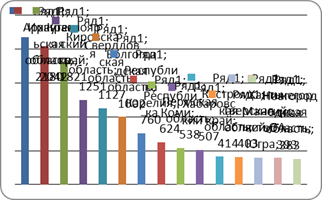 Рисунок 2: Пиломатериалов по регионам РФ, 2004, тыс. м3 Источник: Госкомстат РФ Доля Красноярского края составляет 15% в общероссийском производстве пиломатериалов. На территории Красноярского края находятся два крупнейших производителя пиломатериалов России с объемами производства свыше 400 тыс. м3 – это ЗАО «Новоенисейский ЛХК» (объем производства в 2003 г. составил 505 тыс. м3 пиломатериалов) и ОАО «Лесосибирский ЛДК- 1» (объем производства в 2003 г. составил 430 тыс. м3 пиломатериалов), которые находятся в г. Лесосибирске. Кроме этого, в г. Лесосибирске находится ОАО «Маклаковский ЛДК» (объем производства в 2003 г. составил 160 тыс. м3 пиломатериалов).