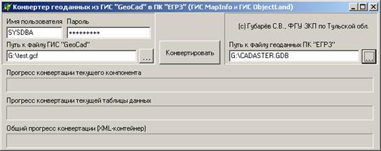 Рисунок 6. Схема выполнения конвертации Задание на процедуру определяет: состав и объем данных выгружаемых из БД правила интерпретации данных выгружаемых в пакет обмена состав и объем данных загружаемых в базу данных ГИС правила интерпретации данных загружаемых в ГИС. Схема, поясняющая процесс выполнения конвертации в географическую базу для использования в ПК ЕГРЗ, представлена на рисунке 6. 4.3 Выбор среды программирования для реализации конвертера Для создания простого конвертера нет необходимости прибегать к сложным языкам программирования. Единственное требование, предъявляемое к среде разработчика – поддержка сервера баз данных InterBase, BDE, а также поддержка нативных форматов MAP (специализированные графические базы данных). Наиболее удобным инструментом для написания конвертера является визуальный язык программирования. В настоящее время существует достаточно большое количество визуальных языков таких, как C++, Visual Basic 6.0, Delphi 7.0, C#. C++ и C# С++ в настоящее время считается одним из господствующих языков, используемых для разработки коммерческих программных продуктов. В последние годы это господство слегка поколебалось вследствие аналогичных претензий со стороны такого языка программирования, как Java, но маятник общественного мнения качнулся в другую сторону, и многие программисты, которые бросили С++ ради Jаvа, в последнее время поспешили вернуться к своей прежней привязанности. В любом случае эти два языка настолько похожи, что, изучив один из них, вы автоматически осваиваете 90% другого. С# - это язык, разработанный Мiсгоsоft для сетевой платформы. По существу С# является разновидностью С++, и несмотря на ряд принципиальных отличий, языки С# и С++ совпадают примерно на 90%. Вероятно, пройдет немало времени, прежде чем язык С# составит серьезную конкуренцию языку С++; но даже если это и произойдет, то знание языка С++ окажется существенным преимуществом. С++ является языком программирования общего назначения. Естественная для него область применения - системное программирование, понимаемое в широком смысле этого слова. Кроме того, С++ успешно используется во многих областях приложения, далеко выходящих за указанные рамки. Реализации С++ теперь есть на всех машинах, начиная с самых скромных микрокомпьютеров - до самых больших супер-ЭВМ, и практически для всех операционных систем Достоинства языка C++: Масштабируемость. На языке C++ разрабатывают программы для самых различных платформ и систем; Возможность работы на низком уровне с памятью, адресами, портами. Что, при неосторожном использовании, может легко превратиться в недостаток; C++ имеет мощный препроцессор, унаследованный от C. Но, как и любой другой мощный инструмент, требует осторожного использования; Возможность создания обобщенных алгоритмов для разных типов данных, их специализация, и вычисления на этапе компиляции, используя шаблоны. Подключение интерфейса внешнего модуля через препроцессорную вставку заголовочного файла (#include) серьезно замедляет компиляцию, при подключении большого количества модулей. Для устранения этого недостатка, многие компиляторы реализуют механизм прекомпиляции заголовочных файлов Precompiled Headers; Недостаток информации о типах данных во время компиляции; Язык C++ является сложным для изучения и для компиляции; Некоторые преобразования типов не