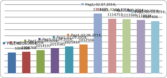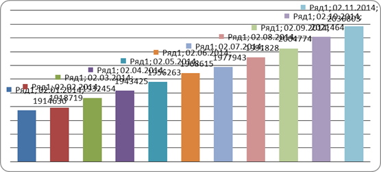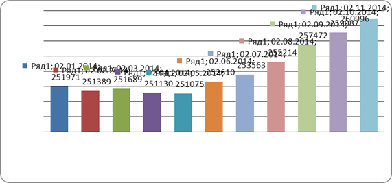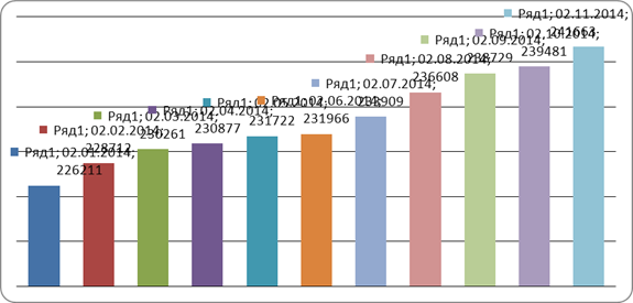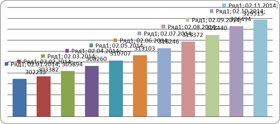 Рисунок 12. Динамика количества вкладчиков АО «ОНПФ «Отан» по обязательным пенсионным взносам за 11 месяцев 2010 года АО «Евразийский накопительный пенсионный фонд» (наименование при первичной регистрации - ЗАО ОНПФ «Сеним») создано в качестве юридического лица 29 октября 1998 года. Осуществляет свою деятельность на рынке пенсионных услуг с 8 июля 1999 года. 13 мая 2008 го 7 августа 2008 года Фонд изменил наименование с АО «НПФ «Сенім» на АО «Евразийский накопительный пенсионный фонд». 13 мая 2008 года фонд получил лицензию на самостоятельное управление пенсионными активами. Акционер фонда - АО «Евразийская Финансовая Компания». Банк-кастодиан - АО «Евразийский банк». Головной офис расположен в г. Алматы. В Республике Казахстан действуют 16 представительств Фонда /26/. Динамика количества вкладчиков фонда по обязательным пенсионным взносам за 11 месяцев 2010 года представлена на Рисунке 13.
