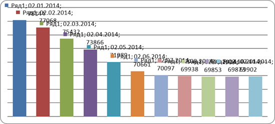 Рисунок 3. Динамика количества вкладчиков АО «НПФ «Атамекен» по обязательным пенсионным взносам за 11 месяцев 2010 года АО «НПФ БТА Казахстан» ДО АО «БТА Банк» - правопреемник АО «НПФ БТА Курмет-Казахстан», обладающий лицензией на осуществление деятельностью по привлечению пенсионных взносов и осуществлению пенсионных выплат №0000007 от 02 февраля 2007 года. З0 декабря 2005 года была произведена государственная перерегистрация изменения названия пенсионного фонда АО «НПФ БТА Курмет-Казахстан» на АО «НПФ БТА Казахстан» ДО АО «БТА Банк». В соответствии со свидетельством о государственной перерегистрации от 27 ноября 2008 года Фонд носит юридическое название АО «НПФ БТА Казахстан» ДО АО «БТА Банк». Контрольный пакет акций АО «НПФ БТА Казахстан» ДО АО "БТА Банк" принадлежит крупнейшему банку на территории СНГ – АО «БТА Банк». Банк-кастодиан - АО «Евразийский Банк». Инвестиционное управление активами фонд осуществляет самостоятельно. АО «НПФ БТА Казахстан» ДО АО «БТА Банк» обладает наиболее разветвленной филиальной сетью среди пенсионных фондов Казахстана и имеет 21 региональное представительство и 100 агентских пунктов в крупных районных центрах. Головной офис фонда расположен в г. Алматы /17/. Динамика количества вкладчиков фонда по обязательным пенсионным взносам за 11 месяцев 2010 года представлена на Рисунке 4.