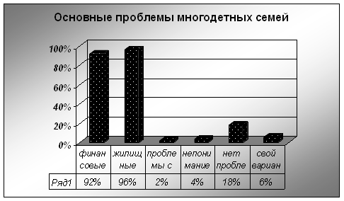 Дипломная работа: Организация социальной поддержки многодетных семей в Нижнекамском муниципальном районеДипломная работа: Организация социальной поддержки многодетных семей в Нижнекамском муниципальном районеСодержание Введение 1 Теоретико-методологические основы изучения деятельности органов социальной защиты в области поддержки многодетных семей 1.1 Семья как объект государственной семейной политики 1.2 Нормативно-правовая основа деятельности органов социальной защиты в области поддержки многодетных семей 2. Анализ деятельности органов социальной защиты в области поддержки многодетных семей в современных российских условиях 2.1 Сравнительный анализ поддержки многодетных семей в субъектах РФ 2.2 Анализ деятельности органов социальной защиты в области поддержки многодетных семей в городе Нижнекамске 3. Мероприятия по совершенствованию деятельности органов социальной защиты в области поддержки многодетных семей 3.1 Российский и зарубежный опыт деятельности органов социальной защиты в области поддержки многодетных семей 3.2 Программа мероприятий по совершенствованию деятельности органов социальной защиты в области поддержки многодетных семей в Нижнекамском муниципальном районе 4. Программа мер по обеспечению выпускной квалификационной работы 4.1 Обоснование социальной значимости внедрения разработанных мероприятий 4.2 Математическое и статистическое обеспечение выпускной квалификационной работы 4.3 Нормативно-правовое обеспечение выпускной квалификационной работы 4.4 Социологическое обеспечение выпускной квалификационной работы 4.5 Компьютерное обеспечение выпускной квалификационной работы Заключение Ссылки на использованные источники Список использованных литературных источников Приложение А. Муниципальная целевая программа «Социальная поддержка многодетных семей в муниципальном образовании Нижнекамский муниципальный район» на 2009 – 2011 годы Приложение Б. Образец Устава общественной организации «Много деток – хорошо!» Приложение В. Инструментарий социологического исследования – Анкета Условные обозначения и сокращения ВВП – валовой внутренний продукт; ВЦИОМ – Всероссийский центр исследования общественного мнения; г. – год; ДРГ – детско-родительские группы; ЗАГС – запись актов гражданского состояния; кв.м. – квадратный метр; млн. – миллион; МО НМР – муниципальное образование Нижнекамский муниципальный район НХТИ – Нижнекамский химико-технологический институт ООН – Организация Объединенных Наций; РАН – Российская академия наук; РБ – Республика Башкортостан; РИА – Российское информационное агентство; РТ – Республика Татарстан; РФ – Российская Федерация; СКР – суммарный коэффициент рождаемости; СМИ – средства массовой информации; СПИД – синдром повышенного иммунодефицита; тыс. – тысяча; США – Соединенные Штаты Америки; УАТ – Управление автотранспорта; УСЗ – Управление социальной защиты; ЦСПСД – Центр социальной помощи семье и детям; ЧП – частный предприниматель. Введение Актуальность темы. Рыночные реформы, нестабильность в экономике повлекли ухудшение условий жизни значительной части населения страны, в особенности безработных, пенсионеров, семей с детьми, выявили неспособность прежней системы социального обеспечения гарантировать каждому человеку достойный жизненн