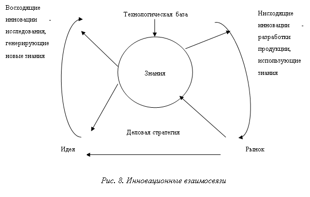 В рамках процесса восходящих нововведений идеи трансформируются в технологические возможности, представленные в виде прототипов продуктовых концепций или платформ. После создания технологической базы это знание, взаимодействуя с исследованиями рынка, в ходе нисходящих инноваций превращается в коммерческую продукцию или услуги. Приведенные точки зрения уточняют подходы к достаточно традиционной для теории инноваций дискуссии об их первопричинах. В качестве таковых рассматриваются либо «технологический толчок» (technology push), либо «вызов спроса» (demand pull). Соответственно тому, какой из указанных стимулов является ведущим, используется разделение на «нововведения предложения» и «нововведения спроса». Согласно, например, Й. Шумпетеру и его сторонникам (К. Фриман, Н. Розенберг, Р. Нельсон, А. Филипс и др.), исходными являются научно-технические предпосылки, в то время как И. Шмуклер, Г. Менш, Э. Вонхиппель и другие полагают, что определяющим является спрос. На наш взгляд, в практике существуют и те и другие. Первые формируют спрос, а вторые возникают в качестве обратной волны на запросы потребителей. Эволюционные нововведения происходят непрерывно. Со второй половины XX века частота их возрастала, поскольку они появляются в результате целенаправленно организованных исследований и разработок. Они часто являются и следствием идей и предложений, поступающих из сферы производства, сбыта, потребления. Особенности современной конкуренции (научно-техническое соперничество, расширение масштабов глобального переплетения экономик, наличие достаточно широкого набора альтернативных вариантов удовлетворения потребностей) приводят к сокращению жизненных циклов, прежде всего, нововведений модернизационного характера. Значение эволюционных нововведений чрезвычайно велико, хотя часто каждое из них само по себе дает относительно небольшой полезный эффект. Они служат важным источником роста производительности труда, экономии ресурсов и повышения качества. Их роль в увеличении экономической эффективности радикальных нововведений сразу после создания последних становится определяющей. Каждую из рассмотренных классификаций инноваций, на наш взгляд, в той или иной мере можно считать справедливой. Довольно часто в практике ведущих развитых стран для определения инноваций применяется следующая простая схема ответов на вопросы: Что производится? Как производится? Для кого производится? В зависимости от ответов на них формируется та или иная классификация инноваций, с точки зрения того, что они изменяют на предприятии. Как правило, это предполагает четыре основных вида инноваций: инновации продукции; инновации процессов (технологические); инновации персонала (человеческого фактора); инновации управленческой деятельности. Применительно к РМК основу инновационной политики должны создавать инновационные технологии и инновационная продукция. Это залог конкурентоспособности и экономического роста. Но главным по значимости считаются управленческие инновации, так как именно они создают предпосылки для осуществления всех остальных видов инноваций. Если на ранних этапах проведения инноваций главная цель предприятия состояла в поиске рыночной «ниши» и достижении минимально необходимого уровня конкурентоспособности производимой 