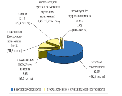 Рисунок А.1 - Диаграмма использования государственной и частной собственности на землю в крестьянских (фермерских)хозяйствах Приложение Б Структура собственности на землю в личных подсобных хозяйствах