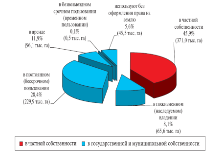 Рисунок Б.1 - Диаграмма использования государственной, муниципальной и частной собственности на землю в личных подсобных хозяйствах Приложение В Структура собственности на землю, предоставленную для ведения садоводства