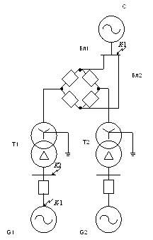 Величина очікуваного збитку враховується у випадках, коли станція займає важливе місце в системі електропостачання країни й очікуваний збиток буде значний. Для невеликих станцій, як наприклад, проектована в даному дипломі, він не враховується. При виборі головних схем електричних з'єднань мають місце такі поняття, як "одноцільова й багатоцільова оптимізація". Вище викладений метод техніко-економічного зіставлення, коли вибір схеми проводиться лише по одному параметрі (мінімум наведених витрат), ставиться до методів одноцільової оптимізації. У випадках, коли проектується велика станція, що грає важливу роль у СЕС країни, ураховувати при виборі головної схеми лише вартісні показники, буває недостатньо. Тоді виникає безліч показників (економічність, надійність, можливість подальшого розширення схеми й т.д.), які в різному ступені властиві різним варіантам головних схем. Ці, що відрізняються між собою варіанти входять в, так називане, безліч Парето, і подальший вибір головних схем іде шляхом порівняння різних варіантів по їхніх основних параметрах з метою виявлення найбільш оптимального варіанта головної схеми електропостачання. Проводити вибір по методу багатоцільової оптимізації - трудомісткий і складний процес. Тому при проектуванні намагаються звести вибір до вартісного показника, тобто до одноцільової оптимізації, якщо це можливо. 5.4 Основні варіанти головних схем електричних з'єднань ГЕСОсновні варіанти головних схем наведені нижче в (табл.7.1, 7.2, 7.3, 7.4). Схеми зображені умовно, із вказівкою тільки основного встаткування (трансформатори, високовольтні вимикачі, роз'єднувачі, реактори, вимикачі навантаження, запобіжники). Джерелом для наведених нижче схем є " Норми технічного проектування підстанцій" [8], застосування цих норм порозумівається, що ВРП ЕС є у свою чергу підстанціями СЕС. Тому перераховані в нормах умови й рекомендації для них також справедливі. 6. Розрахунок струмів короткого замикання6.1 Загальні відомостіКороткими замиканнями (К.З.) називають усяке непередбачуване нормальними умовами роботи замикання між фазами (фазними провідниками електроустановки), замикання фаз на землю (нульове проведення) у мережах із глухими-глухими-заземленими й эффективно-заземленными нейтралями, а також виткові замикання в електричних машинах [13]. К.З. виникають при порушенні ізоляції електричних машин, ізоляцій й електромеханічних частин. В основному, ушкодження ізоляції відбувається за рахунок старіння, неправильного обслуговування, механічних ушкоджень. Крім того, К.З. викликаються перекриттям ТВЧ тваринами й птахами; ударами блискавок; обрив ЛЕП внаслідок погодних умов, дії людей, неправильної дії персоналу. Протікання струмів К.З. приводить до збільшення втрат електроенергії в провідниках і контактах, що викликає їхнє підвищене нагрівання. Нагрівання може прискорити старіння й руйнування ізоляції, викликати зварювання й вигоряння контактів, втрату механічної міцності шин і проводів і т.п. Провідники й апарати повинні без ушкоджень переносити протягом заданого розрахункового часу нагрівання струмами К.З., тобто повинні бути термічно стійкими. Протікання струмів К.З. супроводжується також значними електродинамічними зусиллями між провідниками. Якщо не прийняти належних мір, під дією цих зусиль ТВЧ й їхня ізол
