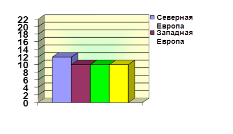 Размещение населения в новых независимых государства особенно важно для анализа российской ситуации, поскольку долгое время все эти территории развивались в рамка единого государства/ По численности населения резко выделяется Украина, имеющая почти 50 млн. жителей. Тогда как половина новых независимых государств имеет менее 5 млн. жителей человек населения. Очень велика также дифференциация по показателю плотности населения. Первую группу образуют страны с высокой плотностью населения (около 50 человек на 1 км2 или выше), Они занимают весь юго-запад пространства бывшего СССР, характеризующийся наиболее благоприятными для жизни людей природными условиями. При этом в европейских государствах группы размещение населения довольно равномерное. Вторая группа — относительно хорошо заселенные государства с плотностью от 25 до 45 чел. на 1 км2. Это Эстония, Латвия в Прибалтике. При этом первая пара — переходные государства редко населенной Северной Европе. Вторая пара — государства с большой долей редко заселенных высокогорных районов. ГЛАВА 2 ДИНАМИКА ПРОЦЕССОВ ЕСТЕСТВЕННОГО ДВИЖЕНИЯ НАСЕЛЕНИЯ В СТРАНАХ ЕВРОПЫ Рассматривая естественное движение населения, в первую очередь, необходимо охарактеризовать такие показатели, как рождаемость и смертность. Рождаемость – это процесс деторождения в совокупности людей, определяющих поколение с определенным репродуктивным поведением. [2] По данным фонда ООН в области народонаселения, в 2003 г. Среднемировой уровень рождаемости составил 21,5 о/оо. Со второй половины XX столетии сокращение рождаемости носит всеобщий характер, начинается в различное время в разных странах и происходит различными темпами Европа является регионом с самой низкой рождаемостью в мире (за исключением отдельных стран — США, Канады, Японии и Австралии, где показатели рождаемости такого же порядка). В большинстве стран уровень рождаемости очень низкий. Среднерегиональный показатель в 2003 г. составил 10 о/оо (в два раза ниже среднемирового). С течением времени различия между мезорегионами стираются. Европу можно назвать регионом относительно ровной картины рождаемости. Величины незначительно колеблются в пределах от 13 о/оо во Франции и Нидерландах до о/оо в Болгарии (самые низкие показатели в мире). Исключение составляют Албания со сравнительно высоким уровнем рождаемости (16 о/оо, самый высокий показатель в Европе), который объясняется мусульманским вероисповеданием большинства населения, Ирландия (15 о/оо), Исландия (14 о/оо) и Македония (13 о/оо). По мезорегионам показатели выглядят следующим образом: Северная и Западная Европа — 11 о/оо, Южная Европа — 10 о/оо, Восточная Европа — 9 о/оо. (рис. 2.1).