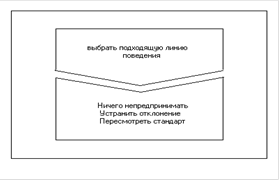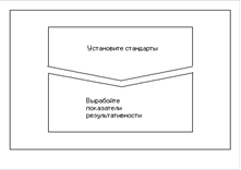 Рис.1 Первый этап процесса контроля Относительно легко установить показатели результативности для таких величин как прибыль, объем продаж, стоимость материалов потому, что они поддаются количественному измерению. Но некоторые важные цели и задачи организаций выразить в числах невозможно. Второй этап процесса контроля состоит в сопоставлении реально достигнутых результатов с установленными стандартами. На этом этапе менеджер должен определить, насколько достигнутые результаты соответствуют его ожиданиям. При этом менеджер принимает еще очень важное решение: насколько допустимы или относительно безопасны обнаруженные отклонения от стандартов. На этой, второй стадии процедуры контроля дается оценка, которая служит основой для решения о начале действий. Деятельность, осуществляемая на этой стадии контроля, является наиболее заметной частью всей системы контроля. Эта деятельность заключается в определении масштаба отклонений, измерении результатов, передаче информации и ее оценке.