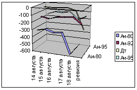 Рис.5 Динамика недостач и излишков на АЗС №84 Излишки, выявленные ревизией, были скрыты недостачами по сменному отчету. По результатам ревизии предлагаю: Оператору 3-го разряда АЗС № 83 Поноревой Р.В. за несоблюдение учетно-регистрационной дисциплины выраженное в нарушении правил учета и хранения нефтепродуктов, не соблюдение п.4.2, п.4.1, п.4.5 должностной инструкции оператора 3-го разряда АЗС ОАО "Туланефтепродукт" и на основании п. п.5 п.5.7 Положения "О порядке наложения дисциплинарных взысканий на работников ОАО "Туланефтепродукт", п.1 ст. 192 ТК РФ сделать замечание и лишить премии на 10%. Оператору АЗС №84 3-го разряда Вениной О.В. за несоблюдение учетно– регистрационной дисциплины выраженное, не соблюдение правил учета и хранения нефтепродукта п.2.1 должностной инструкции оператора 3-го разряда АЗС ОАО "Туланефтепродукт" и на основании п. п.5 п.5.7 Положения "О порядке наложения дисциплинарных взысканий на работников ОАО "Туланефтепродукт", п.2 ст. 192 ТК РФ объявить выговор и лишить премии на 50%; Управляющему АЗС № 83 Логвинкиной В.С. за несоблюдение учетно – регистрационной дисциплины в нарушение должностной инструкции заведующего АЗС ОАО "Туланефтепродукт, на основании п. п.5 п.5.7 Положения "О порядке наложения дисциплинарных взысканий на работников ОАО "Туланефтепродукт", п.2 ст. 192 ТК РФ объявить выговор и лишить премии на 30%; Служба контроля может приказать от имени руководства предоставлять данные с большей частотой. Служба контроля должна договаривается с бухгалтерией о вводе данных по излишках и недостачах, чтобы далее служба контроля выбирала информацию и обрабатывала её по своим "контроллинговым правилам".