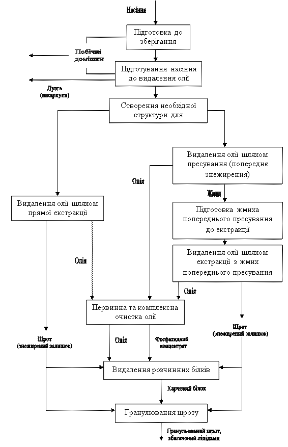 Рис. 4.1. Послідовність операцій переробки олійної сировини Таблиця 4.1 Матеріальний розрахунок при очищенні соняшника