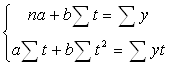 Параметри трендових рівнянь визначають методом найменших квадратів. Згідно з умовою мінімізації суми квадратів відхилень фактичних рівнів ряду yt від теоретичних Yt параметри визначаються розв’язуванням системи нормальних рівнянь. Для лінійної функції вона записується так:
