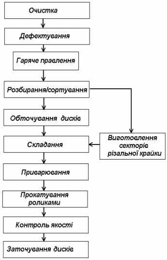 Рис.4.16 Технологічний процес ремонту дисків Таблиця 4.9 Операції та обладнання технологічного процесу ремонту дисків