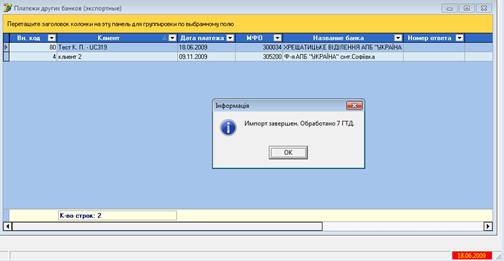 Рисунок 5.9 – Успішне завершення імпорту відповідей від банку 6. ЕКОНОМІКО-ОРГАНІЗАЦІЙНА ЧАСТИНА В останні роки в Україні і в світі значно розвинувся ринок програмних продуктів (ПП), що створило конкурентне середовище, в якому мусять діяти розробники програмного забезпечення. В цих умовах величезного значення набуває необхідність визначення конкурентоспроможності ПП, що розробляється, техніко-економічного обґрунтування доцільності розробки та ефективності їх використання. Для вирішення цих завдань необхідно зробити: – аналіз ринку та визначення конкурентоспроможності ПП; – розрахунок трудомісткості та собівартості розробки і впровадження ПП; – визначення економічної ефективності. Для оцінки економічних показників ПП необхідно насамперед визначити трудомісткість та вартість його розробки і впровадження. 6.1 Розрахунок трудомісткості розробки і впровадження програмного продукту (ПП) Перед тим як безпосередньо приступити до розрахунку трудомісткості даного програмного продукту за темою «Ведення валютного контролю за митними деклараціями інших банків», необхідно підготувати вихідні дані, що приведені в таблиці 6.1. Трудомісткість розробки та впровадження програмного продукту (ПП) за темою «Ведення валютного контролю за митними деклараціями інших банків» визначається для таких стадій розробки : – технічне завдання (ТЗ); – ескізний проект (ЕП); – технічний проект (ТП); – робочий проект (РП); – впровадження (Вп). Таблиця 6.1. Вихідні дані