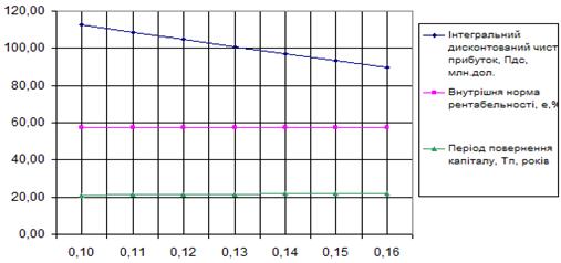 Рисунок 6.6 демонструє вплив зміни нормативу дисконтування на критерії ефективності