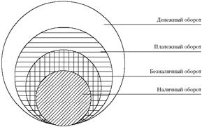 Рисунок 1. – Классификация денежного оборота в зависимости от формы функционирующих в нем денег. Наконец, можно классифицировать денежный оборот в зависимости от субъектов, между которыми двигаются деньги. По этому признаку структура денежного оборота будет такова: - оборот между банками (межбанковский оборот); - оборот между банками и юридическими и физическими лицами (банковский оборот); - оборот между юридическими лицами; - оборот между юридическими и физическими лицами; - оборот между физическими лицами. Система рыночных отношений распадается на две сферы: денежно-товарных и денежно-нетоварных отношений. Особенностью денежно-товарных отношений является то, что происходит не только денежный, но и товарный обороты, поскольку движение денег здесь всегда связано со встречным движением товаров. Каждая часть денежного оборота обслуживает свою сферу рыночных отношений, причем деньги свободно переходят из одной части денежного оборота в другую, что позволяет оперативно перебрасывать их из одной сферы рыночных отношений в другую в соответствии со складывающейся в результате действия закона спроса и предложения конъюнктурой рынка. Таким образом, можно сформулировать две основные задачи, которые решает денежный оборот, обслуживая систему рыночных отношений, что и определяет его роль: - денежный оборот, перераспределяя деньги между своими частями, обеспечивает свободный перелив капитала из одной сферы, рыночных отношений в другую, тем самым осуществляя их взаимосвязь; - в денежном обороте создаются новые деньги, обеспечивающие удовлетворение потребности в них всех сфер рыночных отношений. Главные составляющие денежного оборота: налично-денежный и безналичный обороты. Основная часть его платежный оборот, в котором деньги функционируют как средство платежа, используются для погашения долговых обязательств. Он производится как в наличной, так и в безналичной формах. 1.2 Налично-денежное обращение Экономика любой страны не может обойтись без наличных денег. Даже самые развитые и продвинутые в области передовых технологий государства по-прежнему уделяют значительное внимание наличной составляющей денежной массы. Опыт всех государств показывает, что независимо от уровня развития рыночной экономики и преобладания в денежно-кредитных системах инструментов безналичных расчетов наличное денежное обращение продолжает занимать определенное место. В настоящее время, наличные деньги способны выполнять в полной мере все денежные функции, продолжают оставаться самой ликвидной и надежной формой денег. Налично-денежный оборот представляет собой процесс движения наличных денежных знаков (банкнот, казначейских билетов, разменной монеты). Именно этот оборот обслуживает получение и расходование большей части денежных доходов населения. В налично-денежный оборот складывается постоянно повторяющийся кругооборот наличных денег. Налично-денежный оборот начинается в расчетно-кассовых центрах (РКЦ) Центрального банка РФ. Наличные деньги переводятся из их резервных фондов в оборотные кассы, тем самым они поступают в обращение. Из оборотных касс РКЦ наличные деньги направляются в операционные кассы коммерческих банков. Часть этих денег банки могут передавать друг другу на платной основе, но большая часть наличных денег выдает