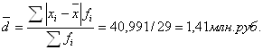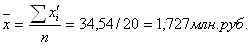 1,727 - 2,94 ≤ χ ≤ 1,727 + 2,94 1,213 млн.руб.≤ χ ≤4,667млн.руб. |