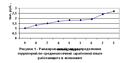 Повышение цен по всем товарным группам составило 11%. 3. При построении индекса цен Пааше объем товарооборота фиксируется на уровне отчетного периода, характеризуя изменение цены в расчете на количество и состав реализованной продукции отчетного периода. А в индексе цен Ласпейресса используются базисные веса, показывая во сколько раз изменились бы потребительские расходы в текущем периоде, по сравнению с базисным, если бы при изменении цен уровень потребления оставался прежним. Поэтому обе системы расчета дают различные результаты, хотя и достаточно близко отражают главные тенденции изменения товарооборота. Задача 7 Приводятся данные государственной статистики о среднедушевых расходах за месяц, тыс. руб. по территориям Российской Федерации за 2002год.
