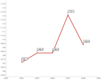 Рис. 25. Структура валового регионального продукта Санкт-Петербургав 2007 году. Индекс промышленного производства. Индекс промышленного производства в Санкт-Петербурге по итогам 2009 года составил 79,9%. Динамика индекса промышленного производства даже в докризисный период не всегда в полной мере учитывала сложность структуры промышленности Санкт-Петербурга, которая характеризуется наличием крупных единичных заказов машиностроительных предприятий с длительным циклом изготовления. Это демонстрирует нижеприведенная гистограмма с разнонаправленной динамикой индекса: