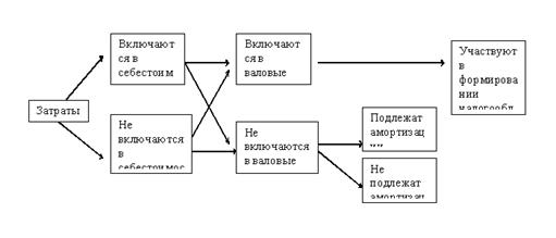 Рис.8. Схема бухгалтерского и налогового учёта затрат Самым существенным отличием между затратами, отражаемыми в составе ВР, и затратами, включаемыми в издержек обращения, является то, что ВР отражаются по любому первому из событий оплата или начисление, затраты в составе издержек обращения - только по мере производства и сбыта продукции, работ, услуг. В связи с принятием нового нормативного налогового законодательства перед всеми бухгалтерами Украины встала нелегкая задача привести бухгалтерский учет на своих предприятиях в соответствие этим Законам. Для облегчения этого процесса Министерство финансов Украины выпустило в свет свои методологические инструкции по нововведениям в бухгалтерском учете: по учету валовых доходов и расходов, по учету налога на добавленную стоимость, по учету балансовой стоимости групп основных средств. Этими нормативными документами практически был введен в действие налоговый учет в экономике нашей страны. [13] Изменения, которые возникли при этом в бухгалтерском учете предприятия - наглядно можно продемонстрировать на примере изменения учета материальных ценностей при отнесении их стоимости в уменьшение налогооблагаемой прибыли предприятий. В соответствии с ПСБУ №3 - "Отчет о финансовых результатах" все затраты, включаемые в состав элементов операционных расходов на производство и сбыт, управление и другие операционные расходы, которые понесло предприятие в процессе своей деятельности, по-старому - себестоимость произведенной продукции, выполненных работ, оказанных услуг; следует подчеркнуть, что понятие издержек обращения в НСБУ отсутствует, после отражения их в бухгалтерском учете приводятся в разделе "II. Элементы операционных расходов" формы №2 "Отчет о финансовых результатах" по следующим показателям: материальные затраты; затраты на оплату труда; отчисления на социальные мероприятия; амортизация; другие операционные затраты. На первый взгляд состав этих затрат соответствует составу затрат, приведенному в разделе III старой формы № 2, но при внимательном изучении НСБУ становиться ясно, что изменился подход к отражению в учете этих затрат, в соответствии с п. 16 ПСБУ №9 - "Запасы": "При отпуске запасов в производство, продажу и другом выбытии оценка их осуществляется по одному из следующих методов: идентифицированной себестоимости, соответствующей единице запасов; средневзвешенной себестоимости; себестоимости первых по времени поступления запасов (ФИФО); себестоимости последних по времени поступления запасов (ЛИФО); нормативных затрат; цены продажи". Приобретение и учет на балансе предприятием сырья, материалов, покупных товаров, готовой продукции, производится через счета, которые классифицируются в бухгалтерском учете как " Инвентарные счета ", относящиеся к группе активных счетов. Причем метод списания материалов на производство с течением времени предприятие может выбирать произвольно в соответствии с принятой на предприятии учетной политикой. Процедура отнесения стоимости материалов на производство строго регламентирована согласно первичным документам: "Лимитно - заборным картам", "Требованиям на отпуск материалов", "Товарным отчетам", " Расходным накладным". Списание стоимости реализованных покупных товаров и готовой продукции к себестоимости продукции никакого от
