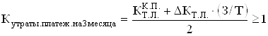 ΔК = - 0,053; Т - период времени в месяцах; Т = 3 мес. 2 - норматив коэффициента текущей ликвидности. Квосстан. платеж