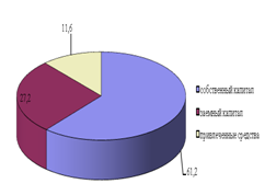 Рисунок 5 – Диаграмма структуры капитала за 2007–2009 годы по ООО «АСП – ЦЕНТР» Доля привлечённых средств остаётся примерно на одном и том же уровне. Для укрепления финансовой независимости предприятию необходимо наращивание собственного капитала. По данным таблицы 3 построена диаграмма на рисунке 6, которая отражает структуру источников по предприятию. По данным таблицы 3 построена диаграмма на рисунке 6, которая отражает структуру источников по предприятию ООО «Текстиль ДВ».
