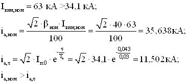 2.2.2 Вибір та перевірка обладнання Усі елементи розподільчого пристрою електричної станції повинні надійно працювати в умовах тривалих нормальних режимів, володіти термічною і динамічною стійкістю при коротких замиканнях. Тому перевірка відповідностей їх параметрів при роботі в різних режимах є дуже важливою. Також необхідно враховувати фактори навколишнього середовища (вологість, температура, висота над рівнем моря та ін.), так як може виникнути необхідність встановлення обладнання з підвищеною надійністю. Вимикачі та роз'єднувачі Вибір вимикачів та роз'єднувачів виконується за параметрами наведеними в табл. 12 і 13. Таблиця 12