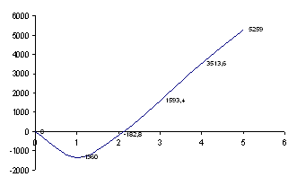 Рис.6.1. Графический метод расчета IRR Таким образом наш проект имеет большой запас прочности по критерию IRR. Рассчитаем индекс рентабельности: