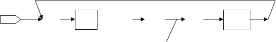 Рисунок 4 Условное графическое обозначениеодноканальной разомкнутой смо с несколькими устройствами Система включает: одноканальные устройства (B1, B2). Система обслуживает входной процесс одного типа. Закон поступления заявок – случайный. В процессе обслуживания заявки поступают: - на узел B1; - из узла B1 на узел B2; - после прохождения узла B2 обслуживание завершается. Время обслуживания заявок распределено по – случайному закону. GENERATE 10,3 QUEUE 1 SEIZE B1 DEPART 1 ADVANCE 8,4 RELEASE B1 QUEUE 1 SEIZE B2 DEPART 1 ADVANCE 6,2 RELEASE B2 TERMINATE 1 START 10000 5 Одноканальная разомкнутая СМО с обратной связью